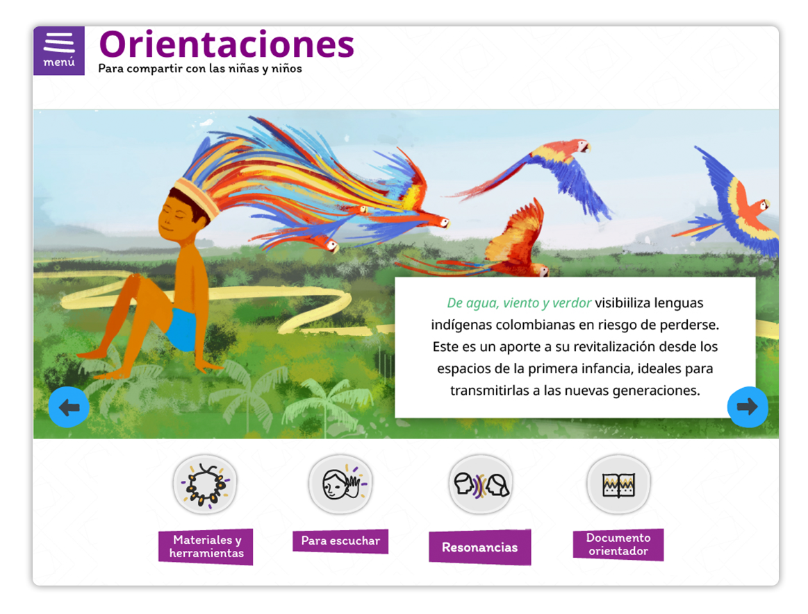 Contar los paisajes sonoros, cantos y relatos indígenas para niños y niñas colombianos. Crear un contenido cuidado para que se descubra el país.
