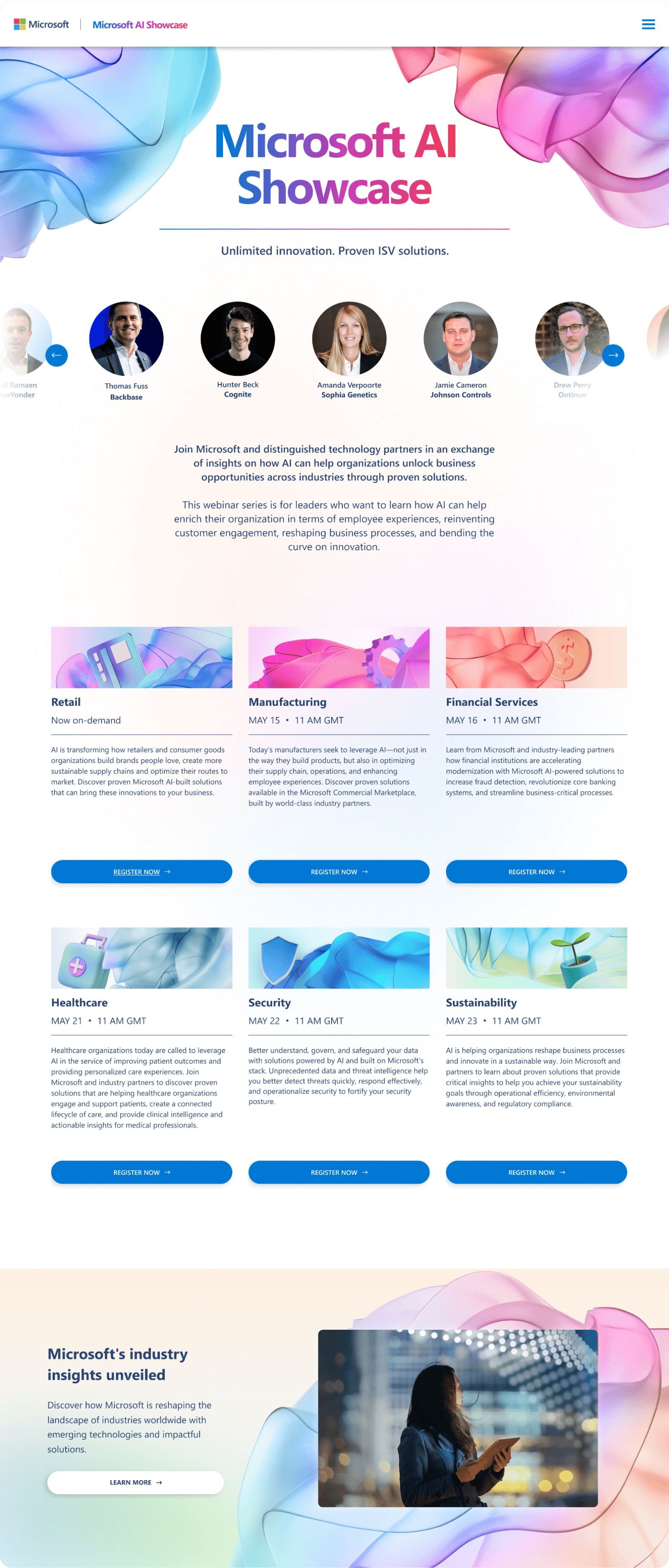 Launching a series of industry-specific virtual events to showcase top-tier partners and their GenAI solutions. In collaboration with HQ and field partner teams, these events featured premium prerecorded content, interactivity, and professional staging to attract potential customers and generate new sales opportunities for both ISV partners and Microsoft.
